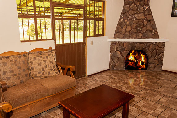 Nuestra cabaña ranchera era una casa de campo y fue adaptada para ser una cabaña, decorada con detalles y muebles de madera tallada al interior y exterior, su construcción a base de ladrillo y techos de madera permiten que guarde el calor en invierno y siendo fresca en verano.