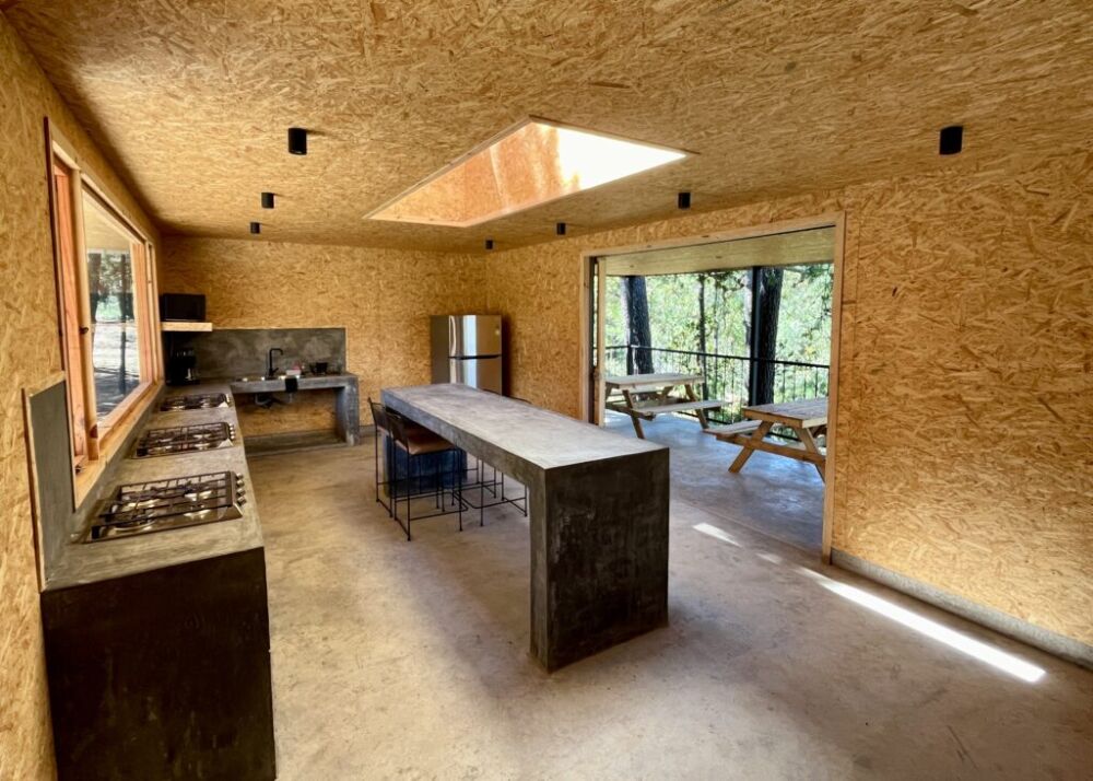 Al hospedarte con nosotros en habitación puedes hacer uso de la cocina común y de la palapa central para preparar cómodamente tus alimentos, al momento de tu registro se entrega un kit con loza y sartenes, también cuenta con refrigerador para almacenar tus perecederos. De hospedarte en dormitorio o acampando, su uso tiene un costo de 75 pesos por persona/noche., incluye el kit con loza y sartenes.